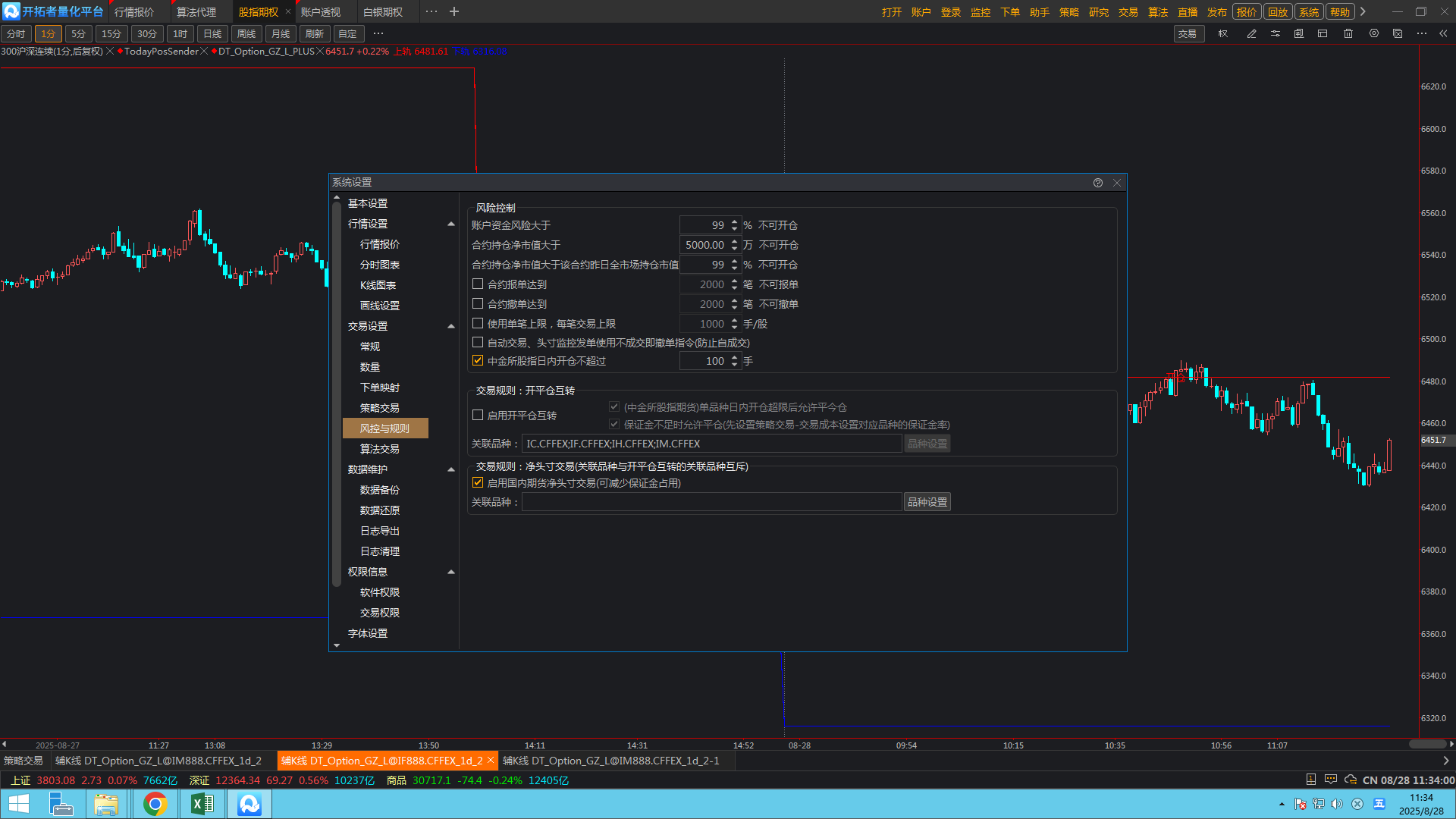 2.关联品种,对应功能右侧的品种为启用该功能的品种,开平互转和净头寸交易能同时启动,但是同一品种不能同时开启两种功能,最多只能选择一种。