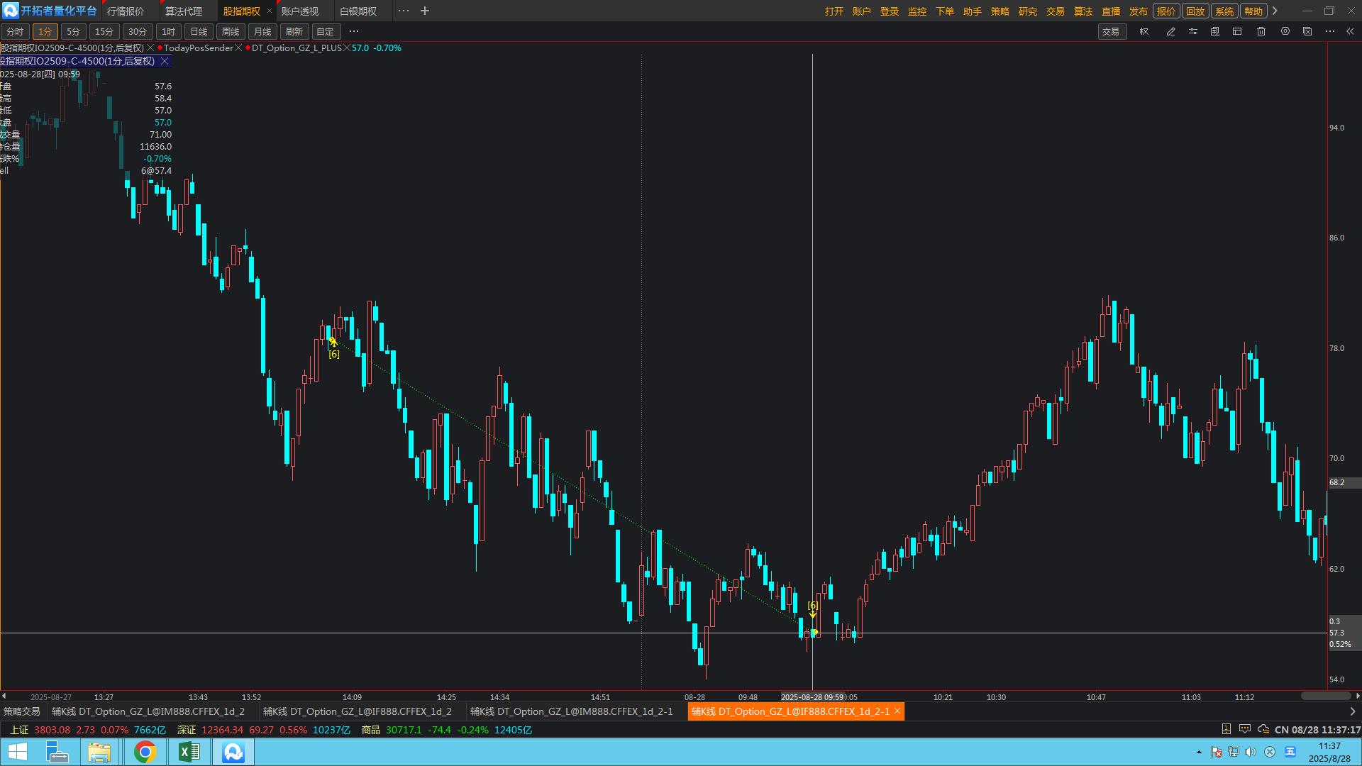 下面的截图是期权的图表交易。可知当天应该是平仓sell操作(左边小列表)