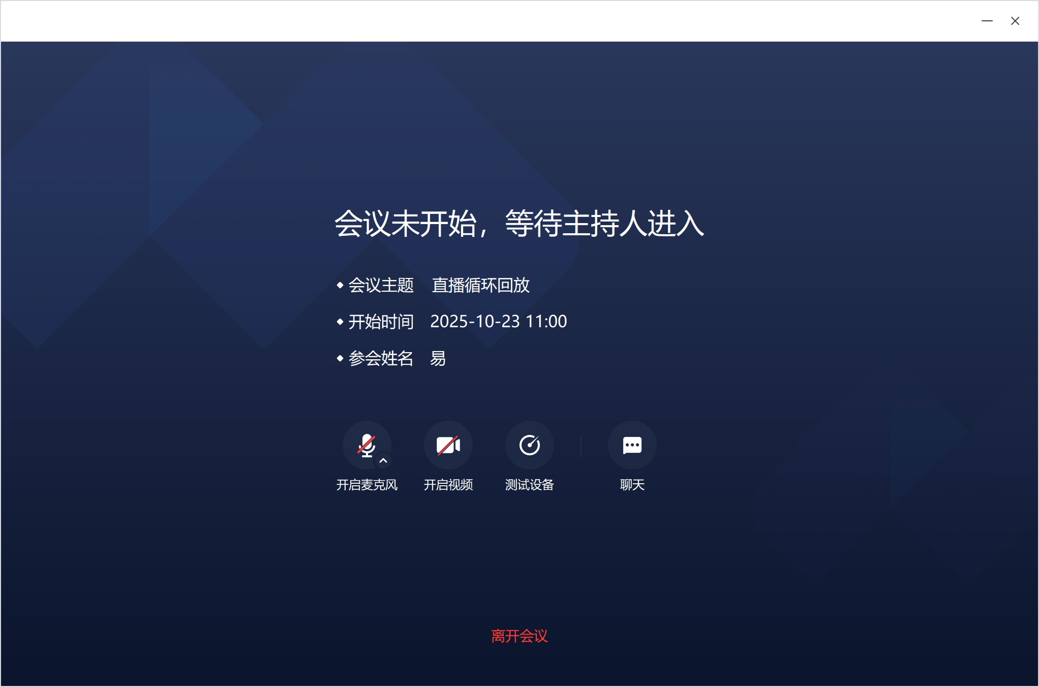别担心,现在大福利来啦!我们为大家准备了一个 24 小时超长待机的会议室,滚动回放近期的精彩直播内容,还会穿插公司最新活动安排预告,让大家不再错过任何有价值的活动。