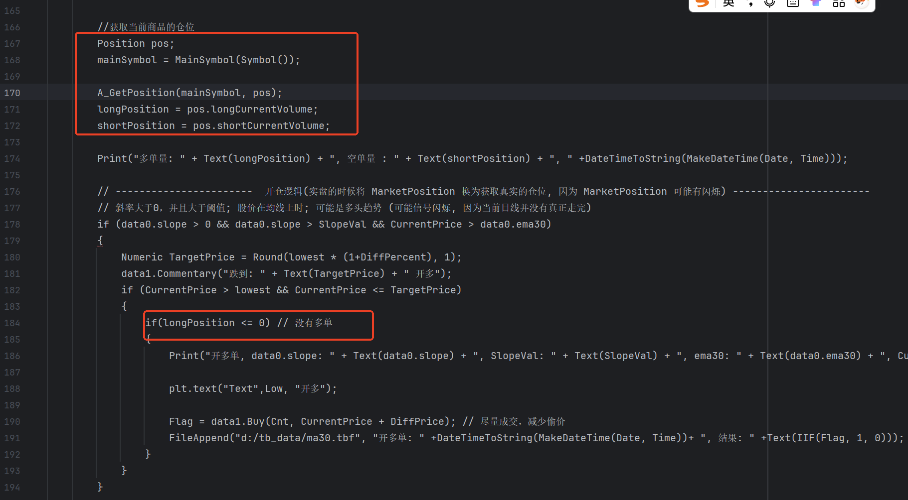 Print("开多单, data0.slope: " + Text(data0.slope) + ", SlopeVal: " + Text(SlopeVal) + ", ema30: " + Text(data0.ema30) + ", CurrentPrice: " + Text(CurrentPrice) + ", lowest: " + Text(lowest) + ", " + DateTimeToString(MakeDateTime(Date, Time)));