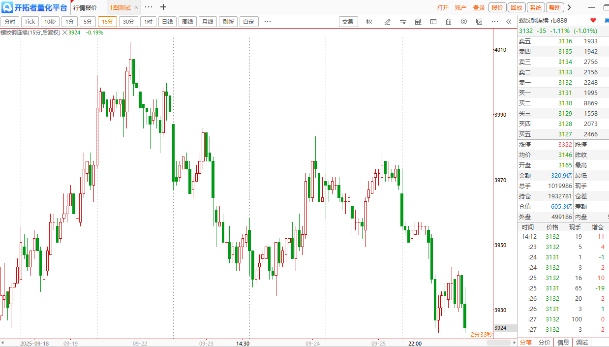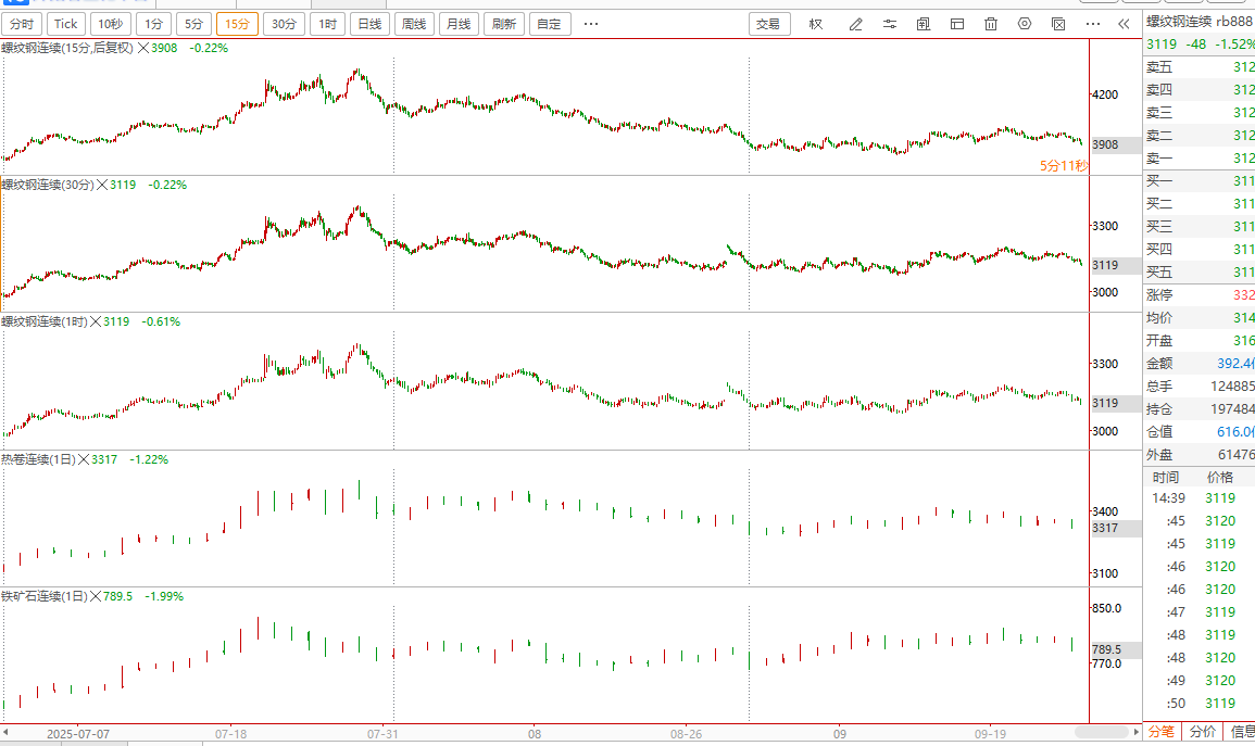 图上的RB888为15分钟,我们需要增加30分钟和60分钟的RB888,和日线HC888,日线I9888作为交易标的。