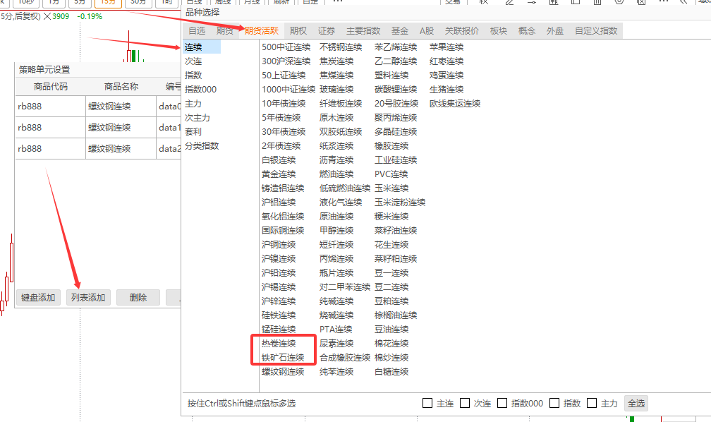 接下来我们使用列表添加,增加2个其他品种 HC888 和 I9888