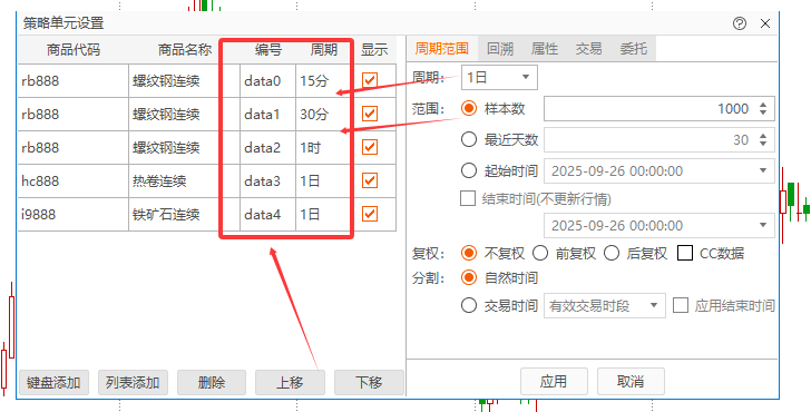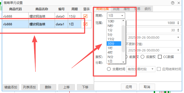 假设我们需要做跨周期跨品种交易