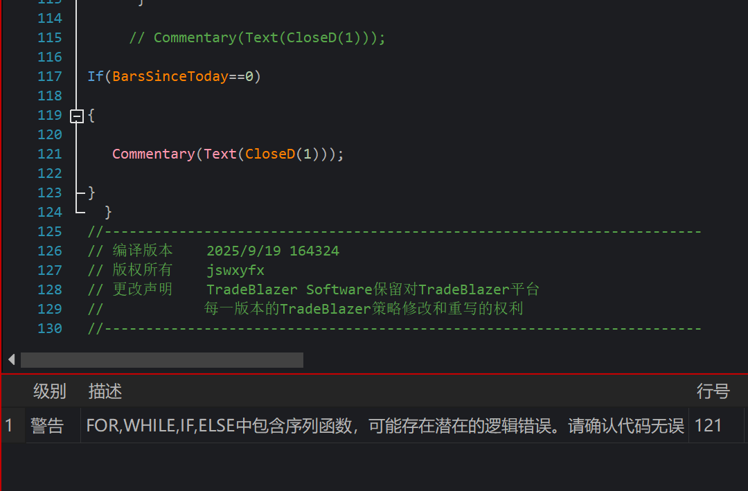 放到BarsSinceToday条件里编译有警告错误