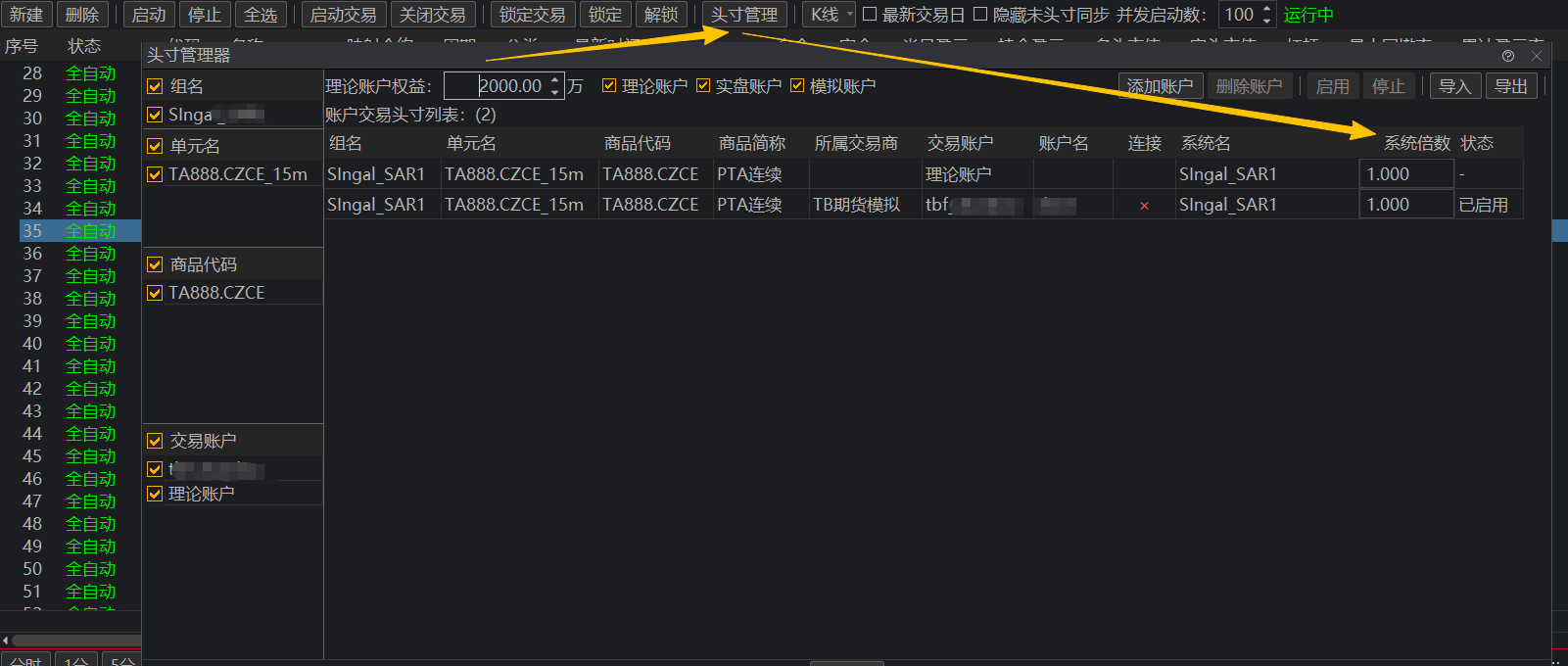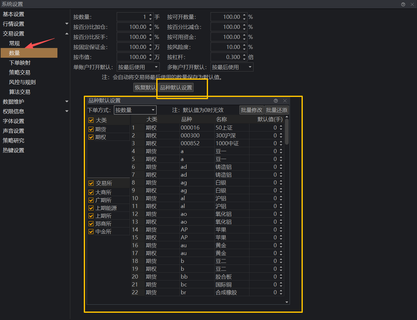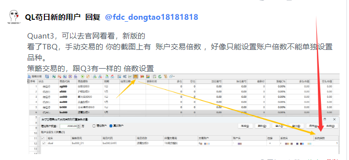 看了TBQ,手动交易的 你的截图上有 账户交易倍数 ,好像只能设置账户倍数不能单独设置品种。