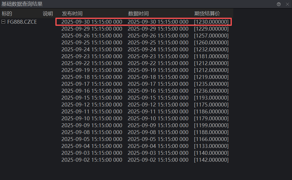 在10月6日,已经可以取到9月30日最新K线的结算价