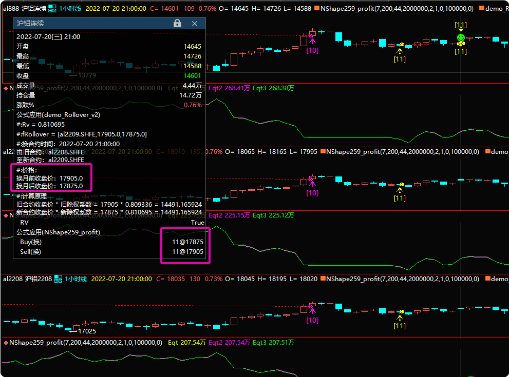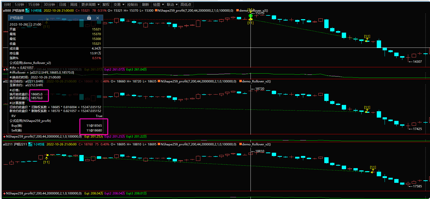 AL888,在 2022-10-26 换合约的位置,al2211 换 al2212,执行的换月价格,与基础数据中给出的价格不一样,这可能是什么原因呢?其它位置没有出现这样的问题,都是相符的。