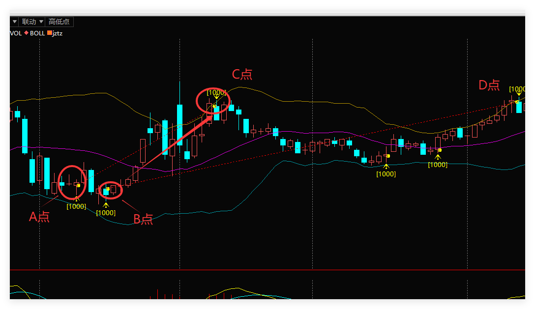 c点的时候,持仓是a点1000手和b点的1000手,加起来2000手,然后c点你写平1000手,那不就是还剩下b点的1000手留着以后平吗?