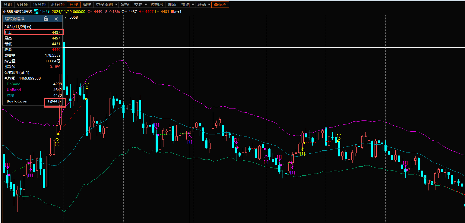 我想加载在日线图表上,向上突破某条线开多,然后向下跌破某条线平多,但是回测出来是开盘价就会执行,请问在实盘中能正常按照市价执行吗?