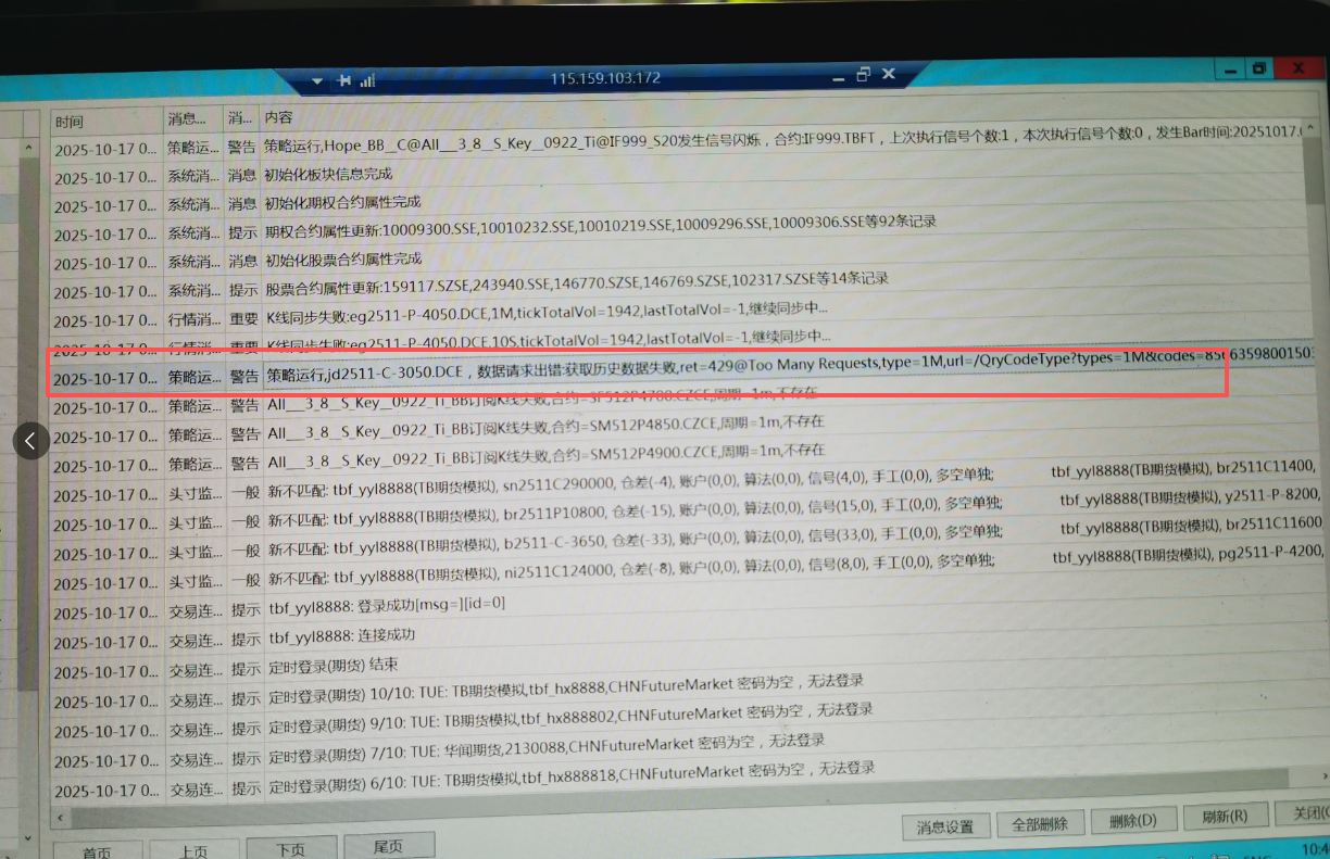 当时这个是在云端运行,出错了不能复现,K线根数15000根,最小周期10s,查看消息中心出现了这个警告,这个有可能是什么原因造成的呢?