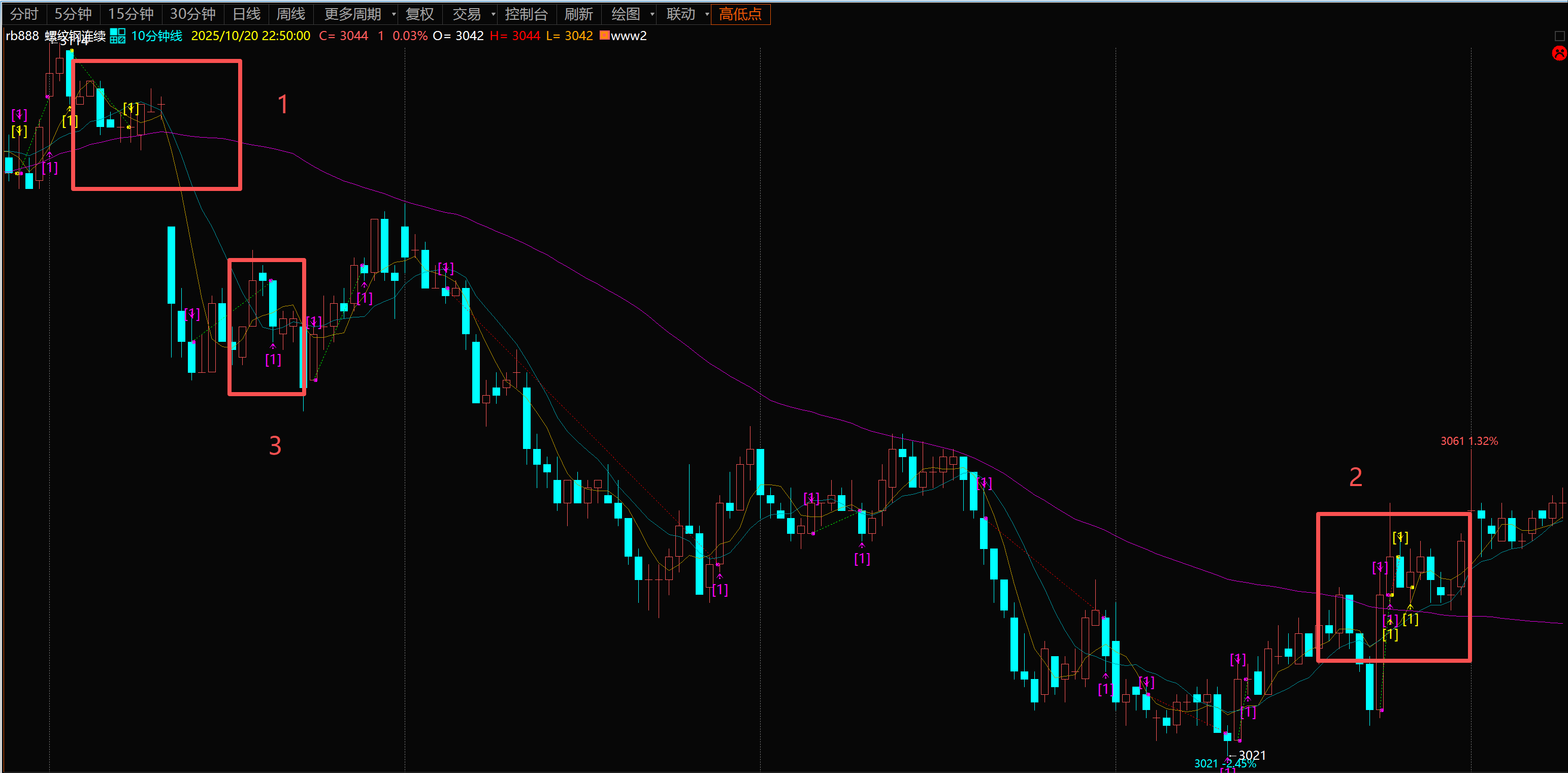 还是没表达清楚,图上是有三条线,但是你没说明这三条线分别是什么线,只说了一个5周,一个10周,那第三条是什么?这个长均线周期多少?