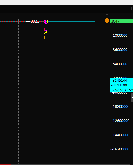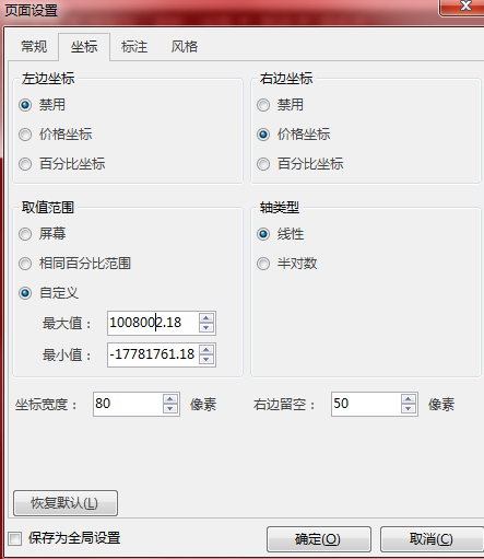 老师好,我编辑了一个公式,挂到K线图上之后,整个的这个显示页面变成一条线,压缩了,他们那个坐标居然是:最小值-17781761.18,最大值1008002.18,非常大的数字,能否显示这种正常的这个比例,我不知道这会儿怎么处理,
