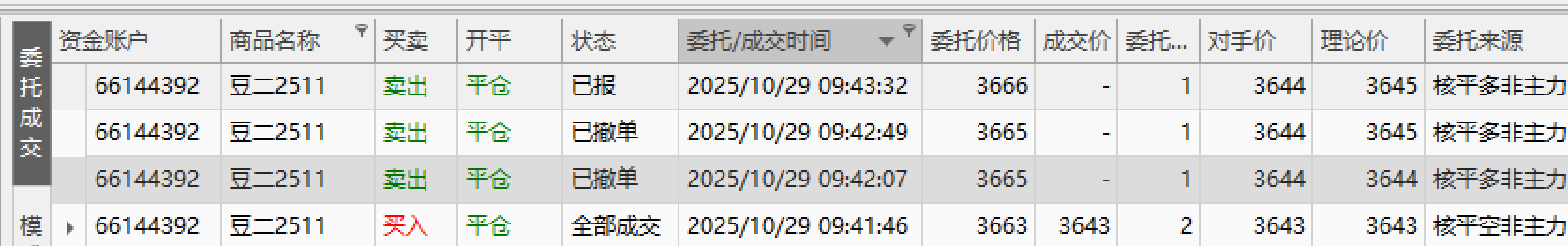 所以你的问题是,你的买入平仓单发出去,能成交,但是卖出平仓单发出去不能成交,是吗?
