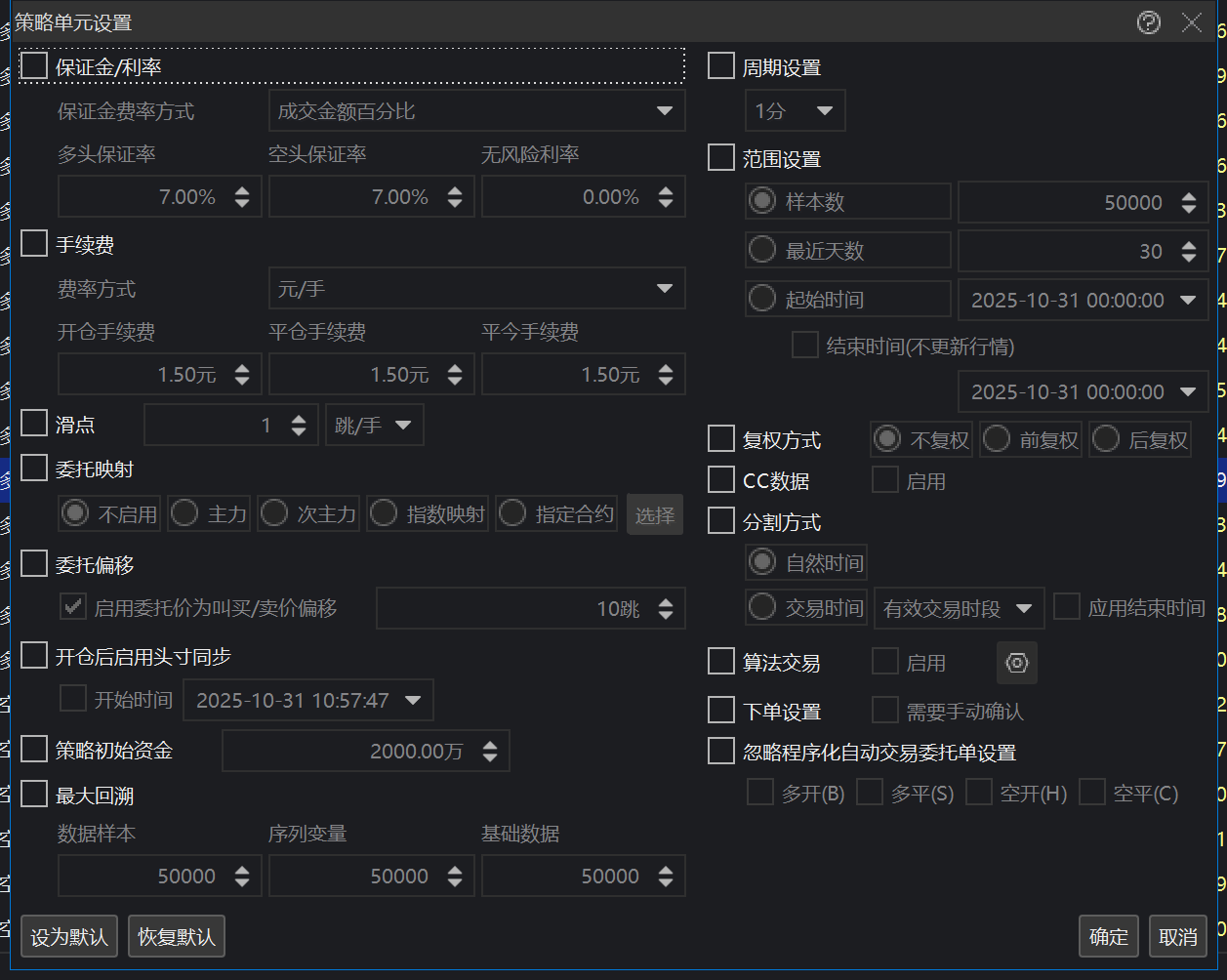 策略单元设置,样本改为50000,回溯也都改为50000