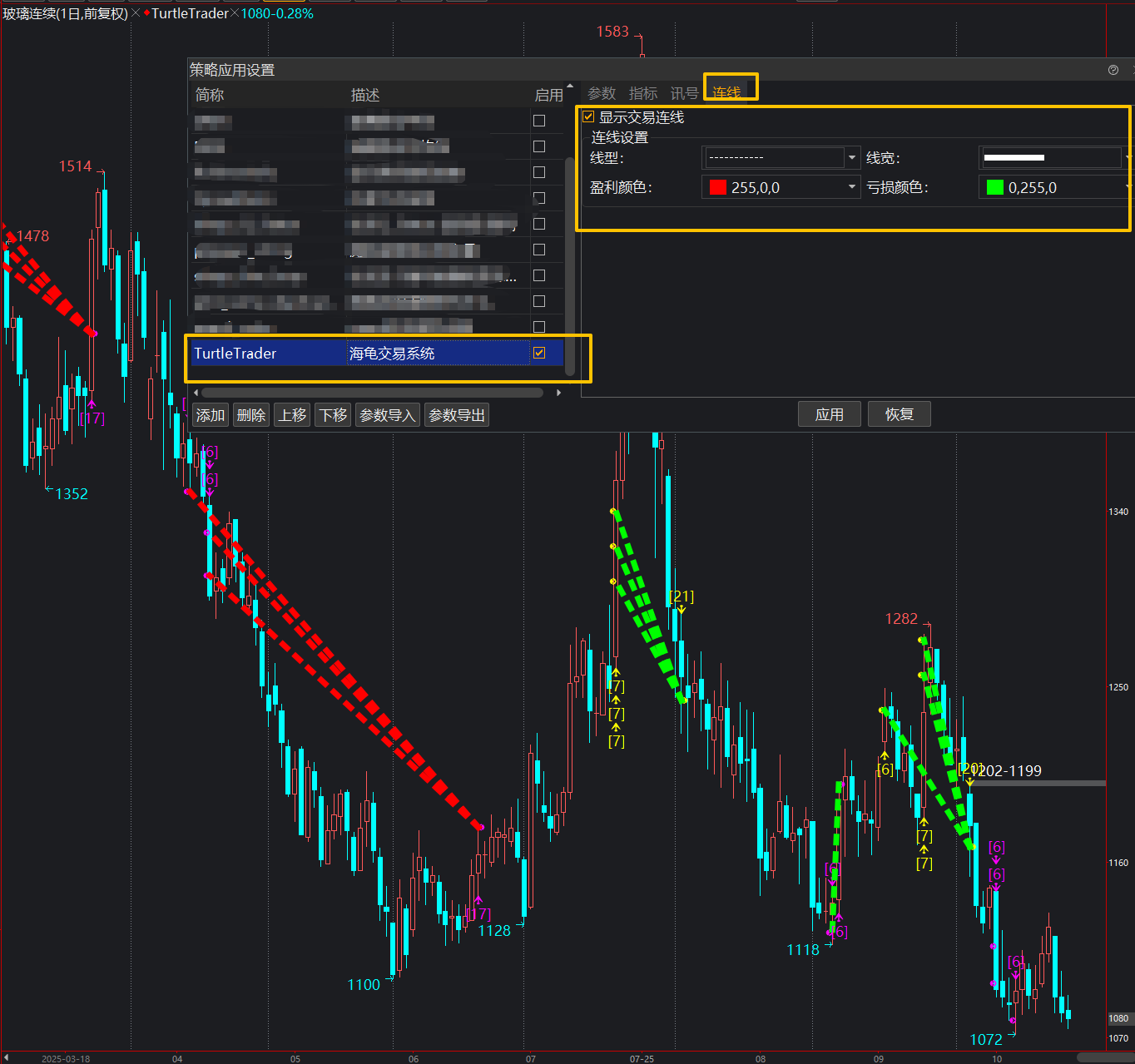 怎么调整在复盘页面K线图显示的开平仓之间连线的粗细