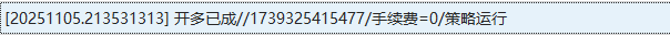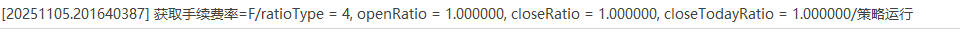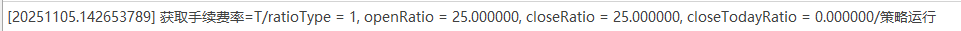 }我通过上述代码获取手续费率(OnReady)和每笔成交的手续费(OnOrder),策略应用于实盘帐户的黄金/AU2512,实际返回日志文件截图如下