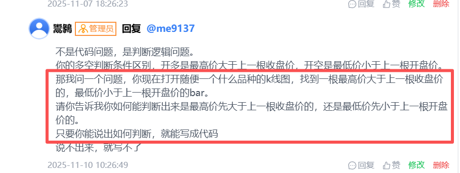 那我问一个问题,你现在打开随便一个什么品种的k线图,找到一根最高价大于上一根收盘价的,最低价小于上一根开盘价的bar。