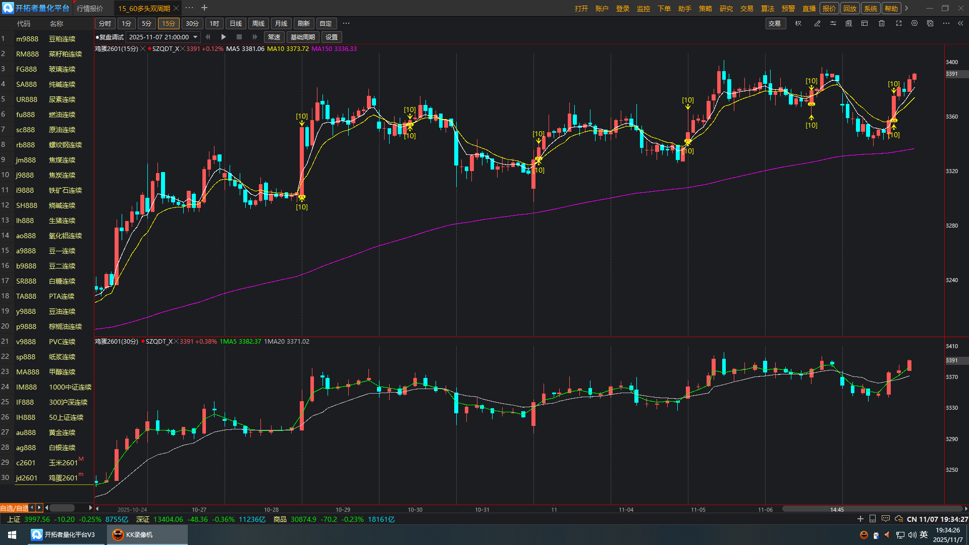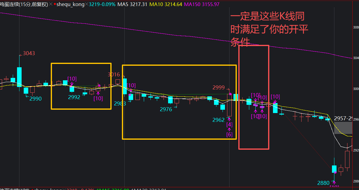 老师,你把图形放大看有信号的K线就能看出来,向上向下的开仓平仓箭头在一根K线上,而空头代码不是这样的显示
