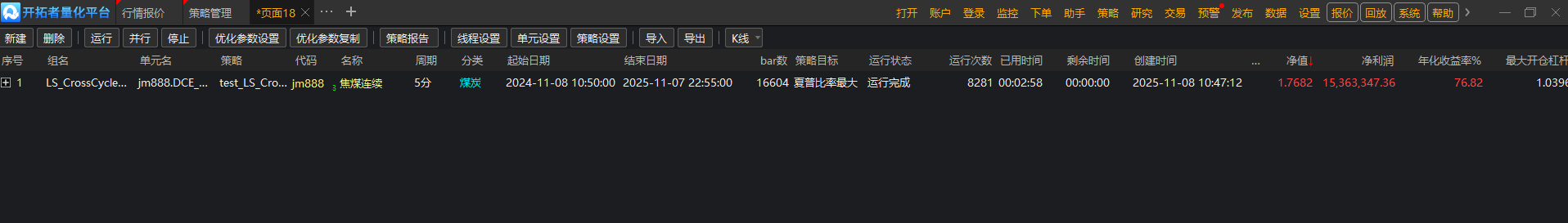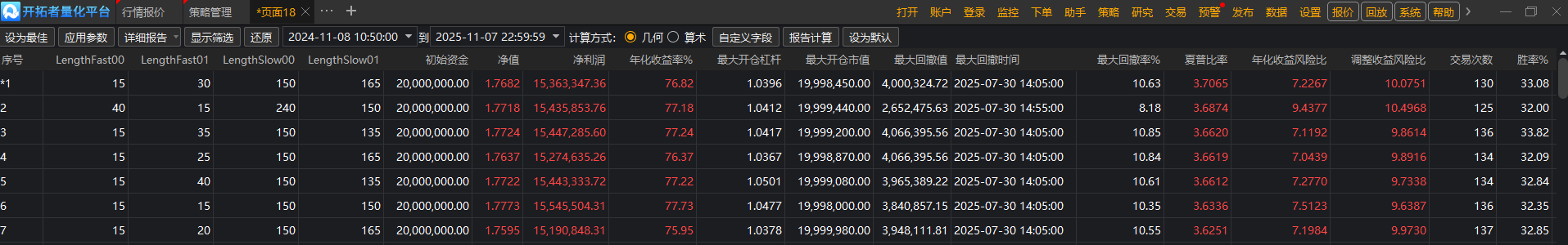 策略里设置了资金动态权益2000000元(2百万),思路是根据条件,半仓至全仓操作,回测盈利15363347元,怎么年化收益率是76.82%,而不是7.6倍,策略报告里初始资金怎么显示2千万?