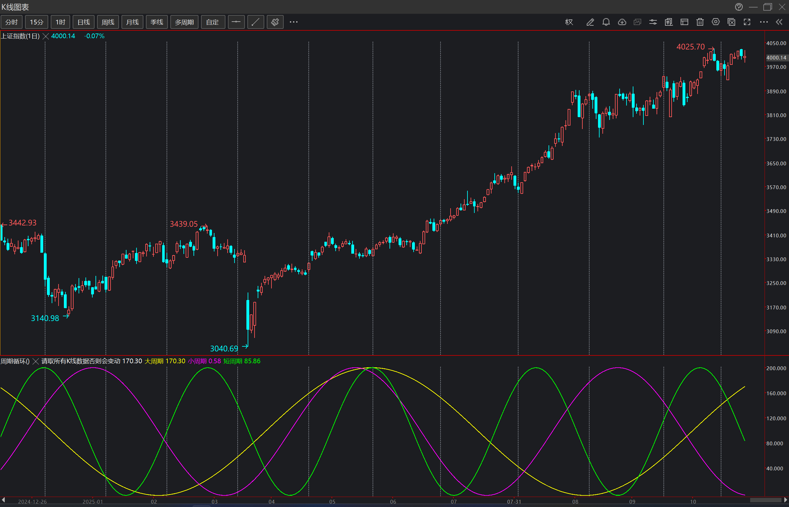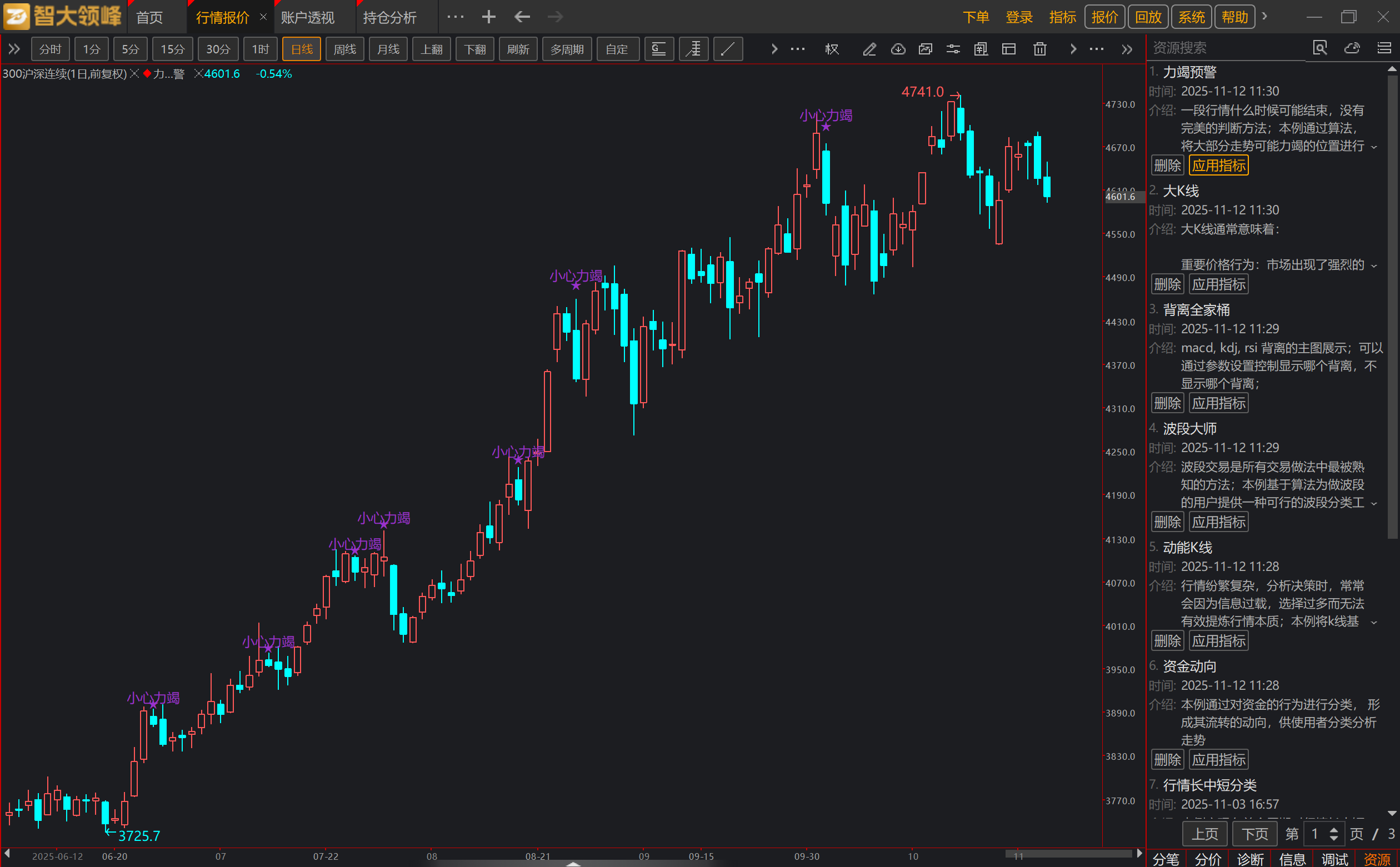 对日线周线月线起作用,请确保取得上市以来所有k线,否则测算会变;行情走势有着自己的频率,本例通过大中小三种频率拆解行情走势的包络,供使用这识别并分类行情