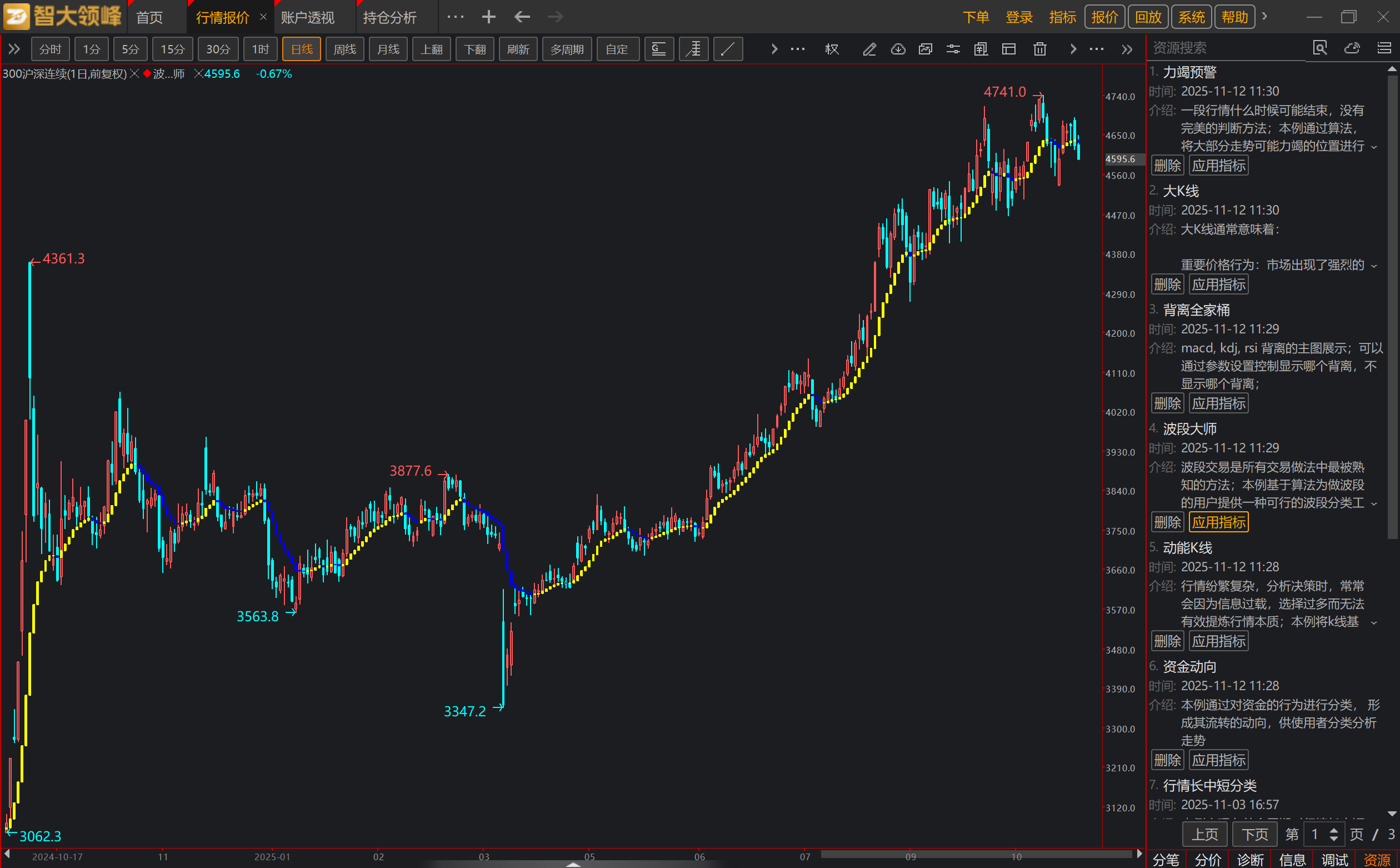 波段交易是所有交易做法中最被熟知的方法;本例基于算法为做波段的用户提供一种可行的波段分类工具,方便用户自行通过多周期观察实现波段的识别与分类;