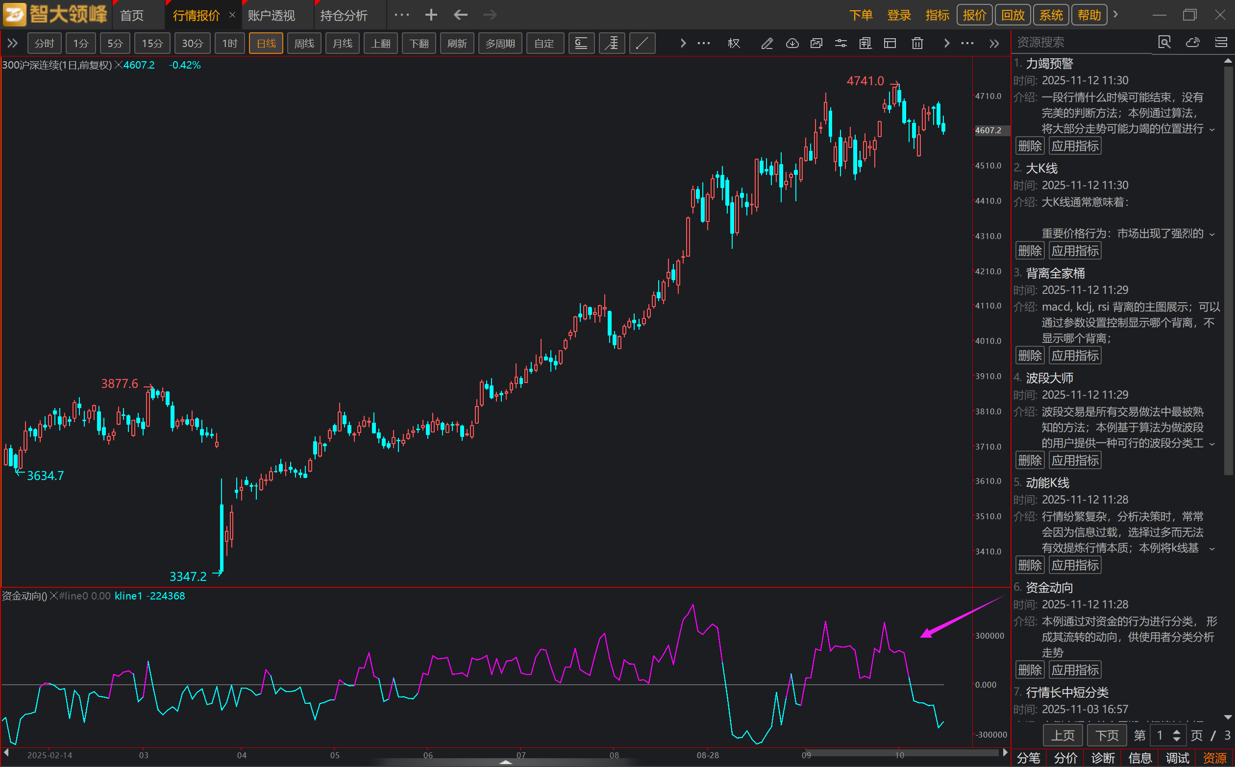 本例通过对资金的行为进行分类, 形成其流转的动向,供使用者分类分析走势