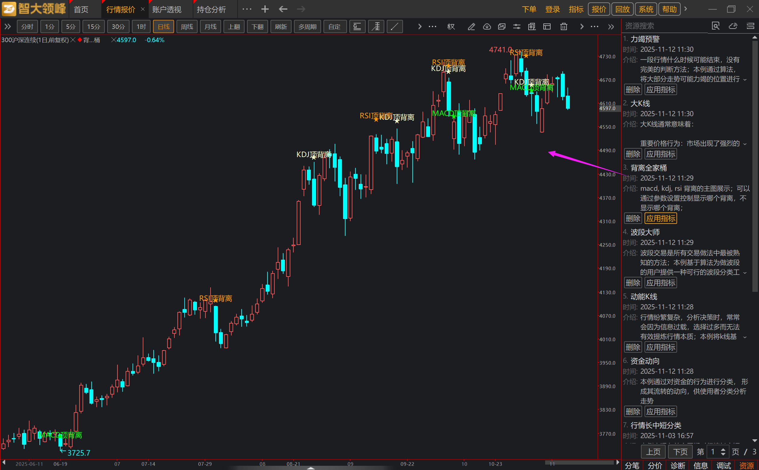 macd, kdj, rsi 背离的主图展示;可以通过参数设置控制显示哪个背离,不显示哪个背离;