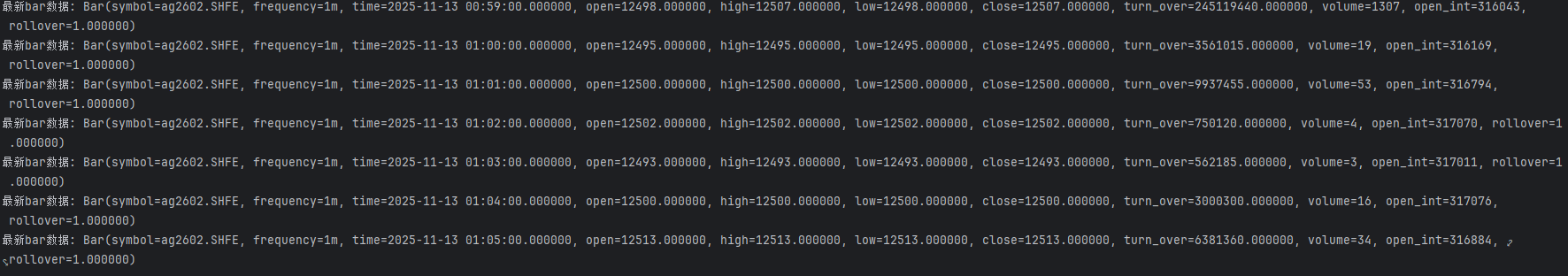 如图,tbpy中,获取的1分钟bar数据,只有第一次是正常的,后续的都不正常,其他周期也一样