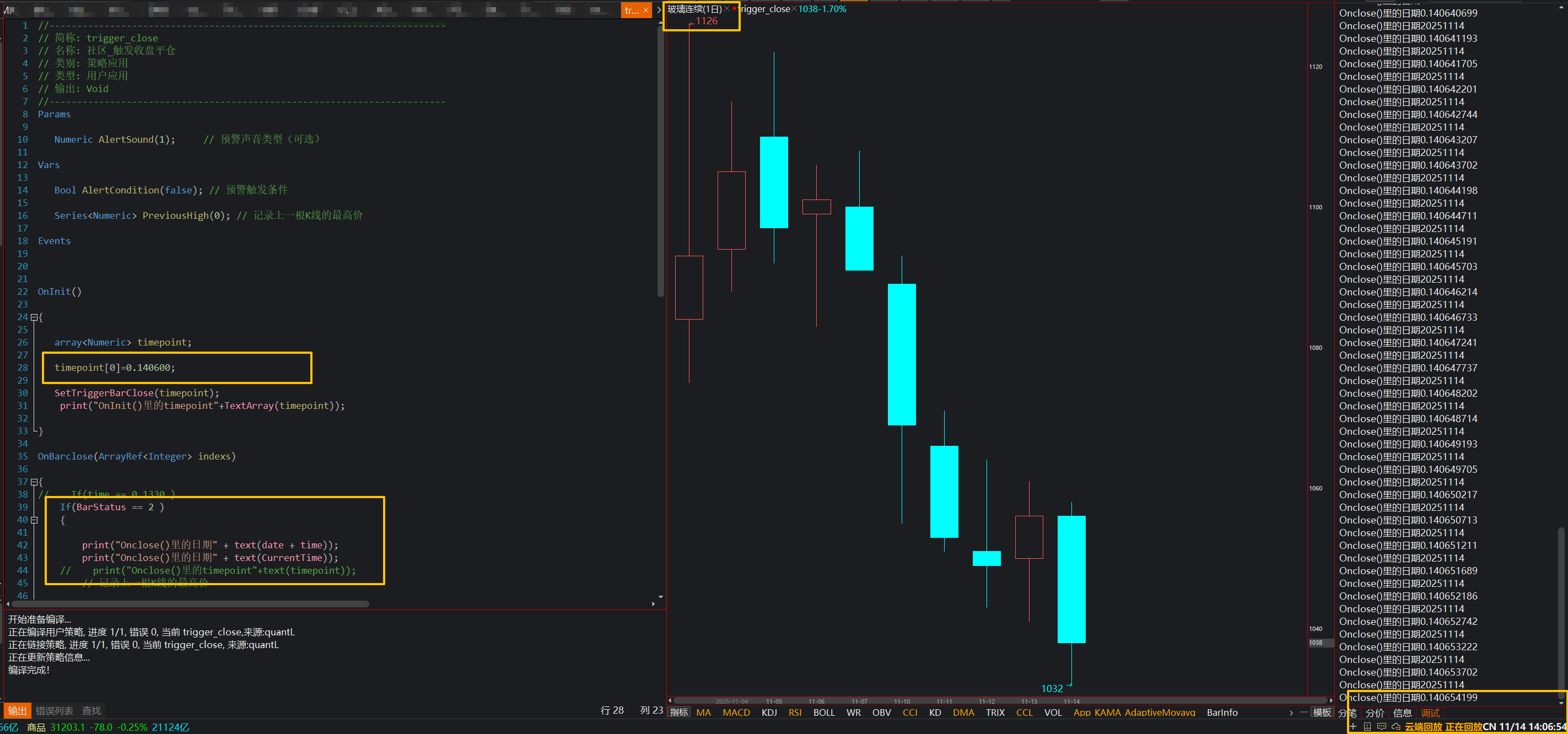 我用回放测的是可以的呀,可以触发Onbarclose域