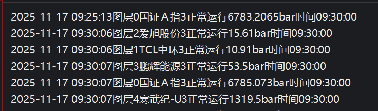 print(DateTimeToString(date + CurrentTime) + "图层" + text(i) + data[i].SymbolName + "3正常运行" + text(data[i].close)+"bar时间"+TimeToString(data[i].time));