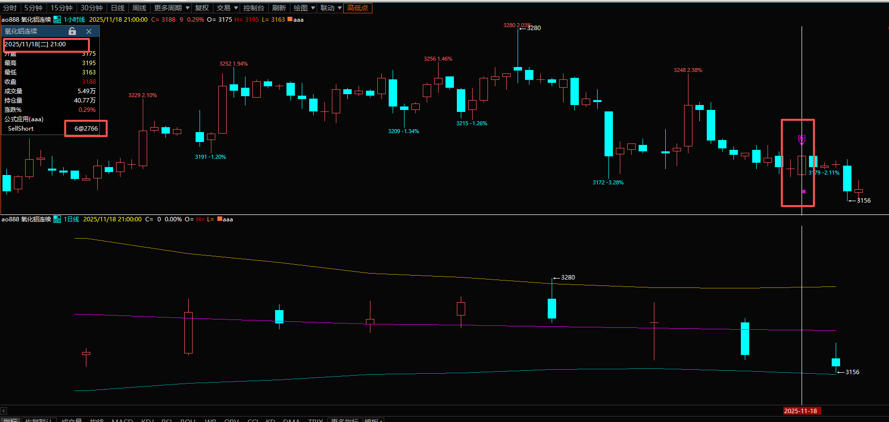 有夜盘的商品,日线对应6根小时K线,不管当天是在哪个时间开、平仓,在图上表都是在21点第1根小时K线上标注信号