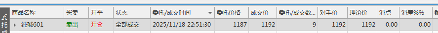 今天实盘中发现,22:51分进行了开仓,买入价格是:1192.