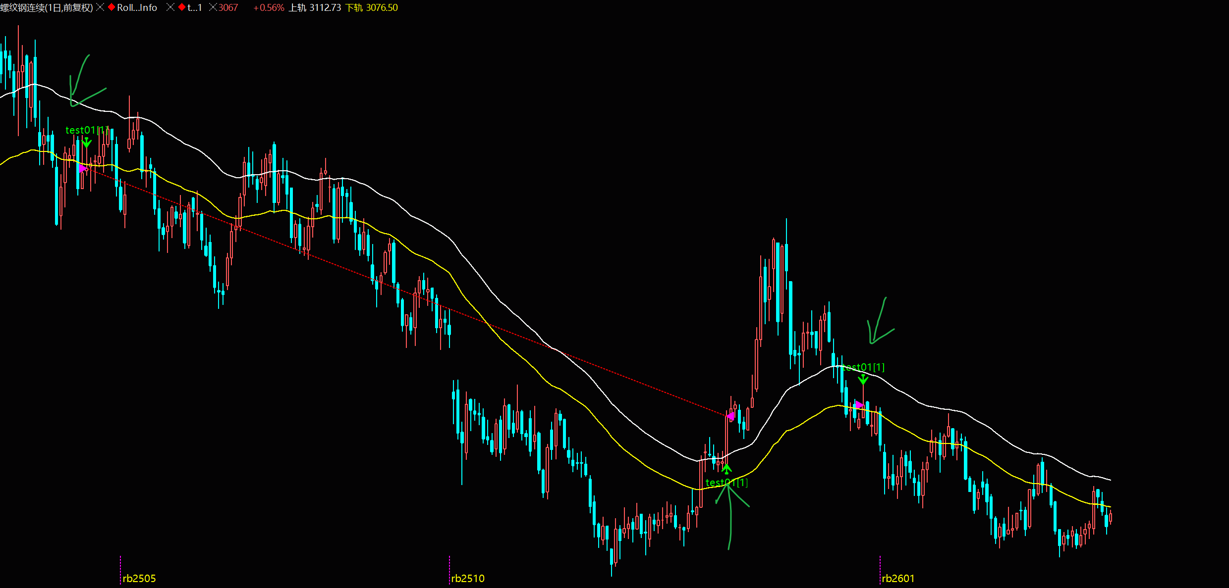 如图所示向下箭头意味着空头开仓,向上是平仓。只有空头开平仓,没有多头。最大的问题是和双周期共振逻辑不符合,成了单周期交易了。