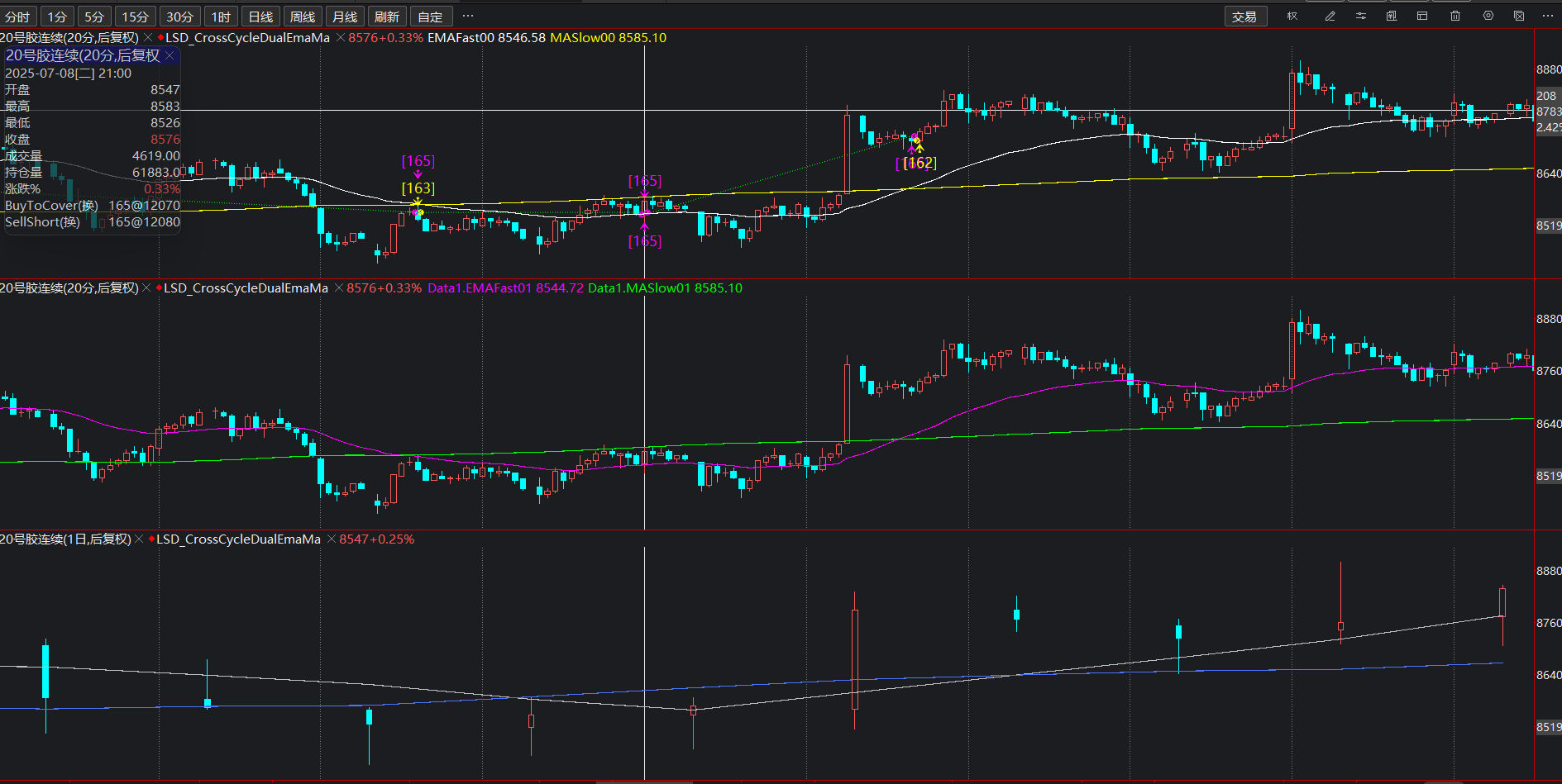 // 名称: 跨周期混合双均线双向多头0图层策略