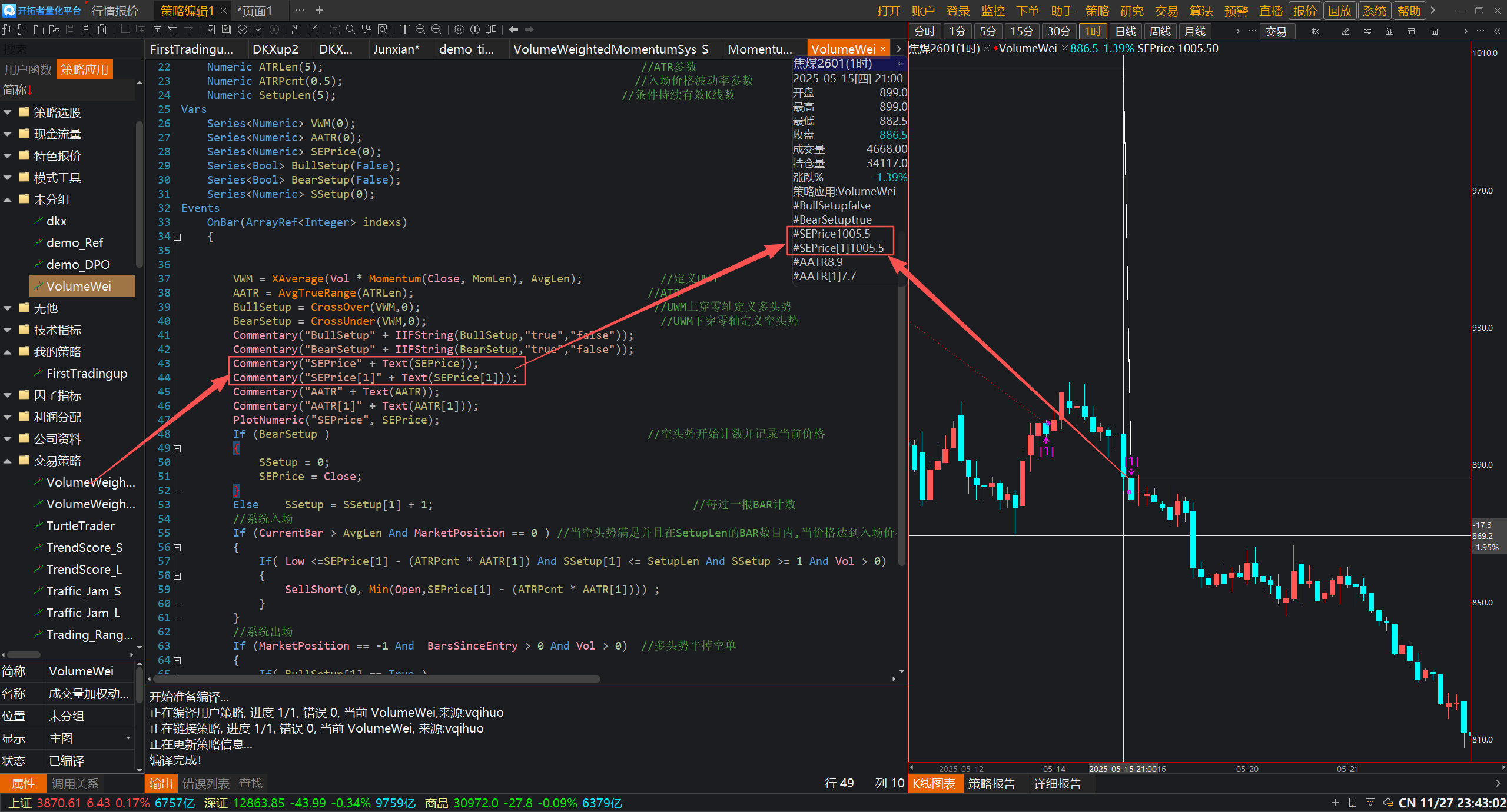 在读咱们系统自带的第一个交易策略 VolumeWeightedMomentumSys_S 时,发现一个问题SEPrice 变量无论在哪根K线上的SEPrice[1]和SEPrice值都是相同的。如上图: