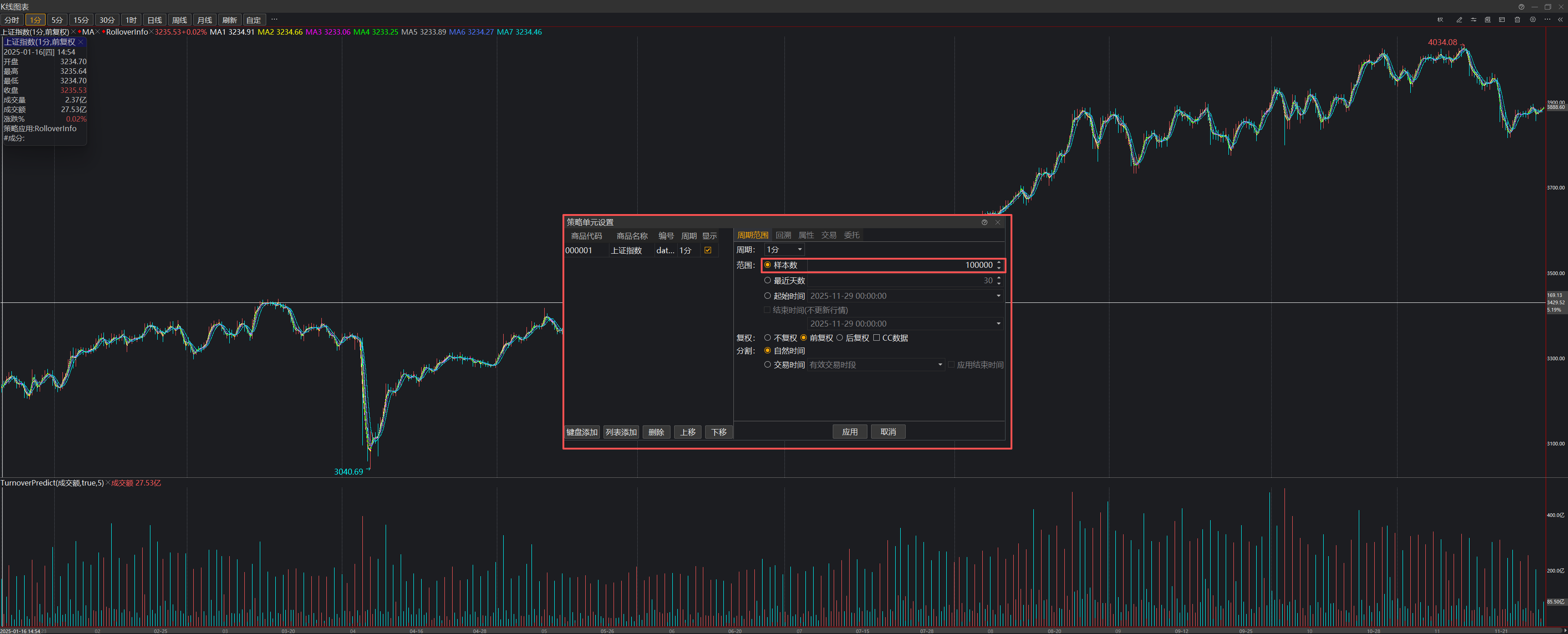 我看1分钟的上证指数k线,只能看到2025年-11-24号的,大约只有1000根k线,这是限制了吗?