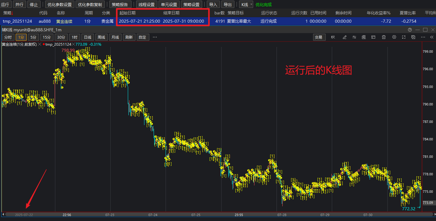 设置成功后,运行出来的回测结果却是 2025-07-21~2025-07-31