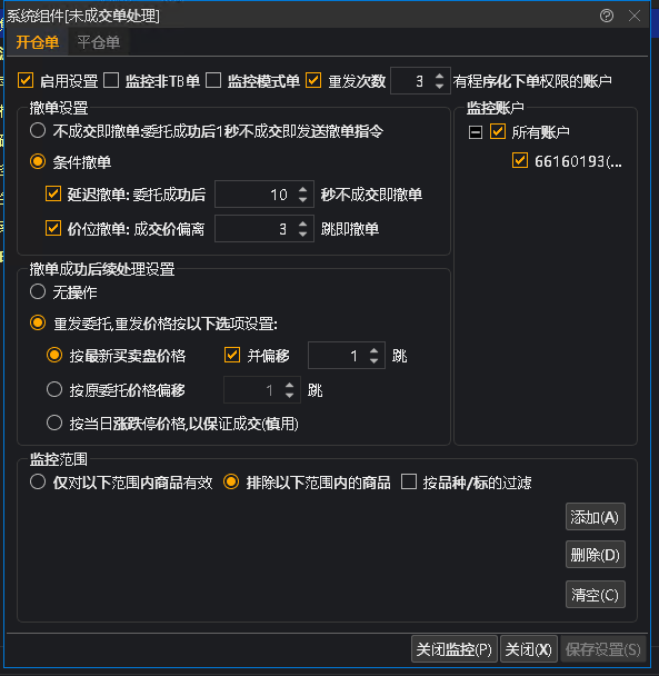 策略代码和参数设置在上传附件中。具体问题是:当符合平仓条件时系统发出了平仓指令,当时因为没有仓单在手,所以提示:仓位不足,平仓失败。这个是能理解的,但是,此时也满足了开新仓的条件,应该开仓,但是系统没有发出开仓指令。