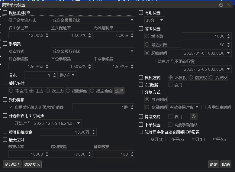 图上如果出现开仓信号但是没有发对应的委托单,这个基本上和代码是无关的,设置问题
