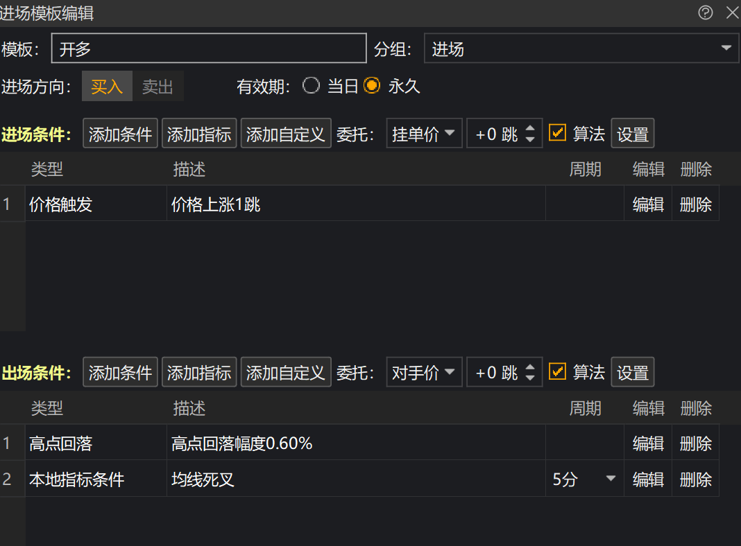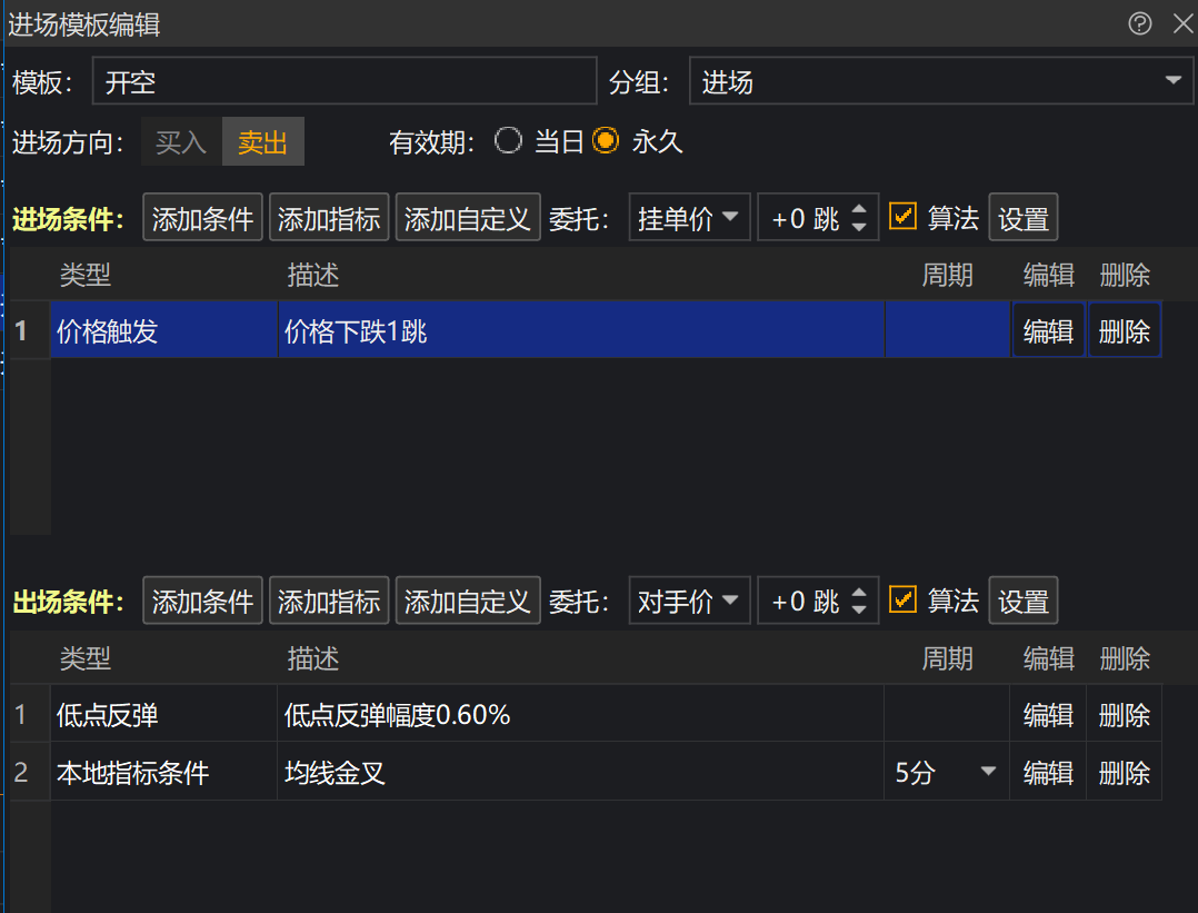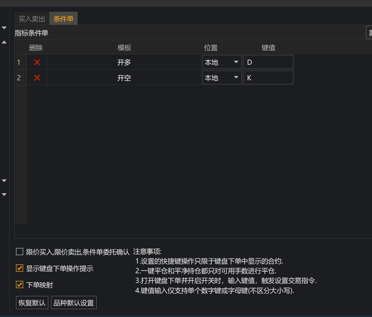 三、开仓时按D键开多,按K键开空,并开仓后根据算法设置秒撒秒开,开错方向可以撒了条件单后重新按一下开仓键,不知道是否你所要的效果,我日内手工就用这个。妥妥的,你试试