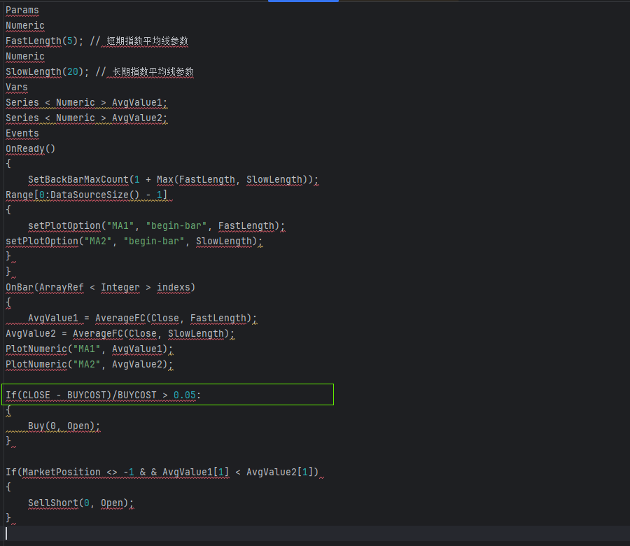 这个绿色绿色是我刚写的,我想用来5%止盈的一句话,其他不用看。BUYCOST定义是我买入这个合约的成本, 我的问题是这样:我选择的数据源是黄金主力连续合约后复权,然后在回测的时候这个CLOSE 和 BUYCOST都是这个黄金主力连续合约后复权的价格,这没问题,然后我实盘中,这个指数下单是映射到对应的黄金主力合约的比如au2603,这个CLOSE和 BUYCOST是什么的价格呢?指数和还是对应主力合约的?发单我知道按照实际发单 我上面那个写的是止盈5%逻辑 。如果是指数价格意思是我后复权指数映射到主力合约后 买入对应主力合约有一个实际成本价 然后我用的是这个实际成本价后复权之后的价格 和指数后复权的价格去算的这个止盈比例吗?