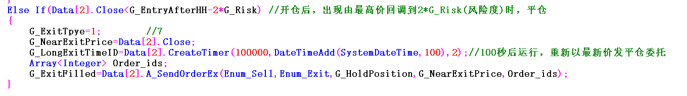 信号: 由最高价回调到2*G_Risk(风险度)时,执行平仓。