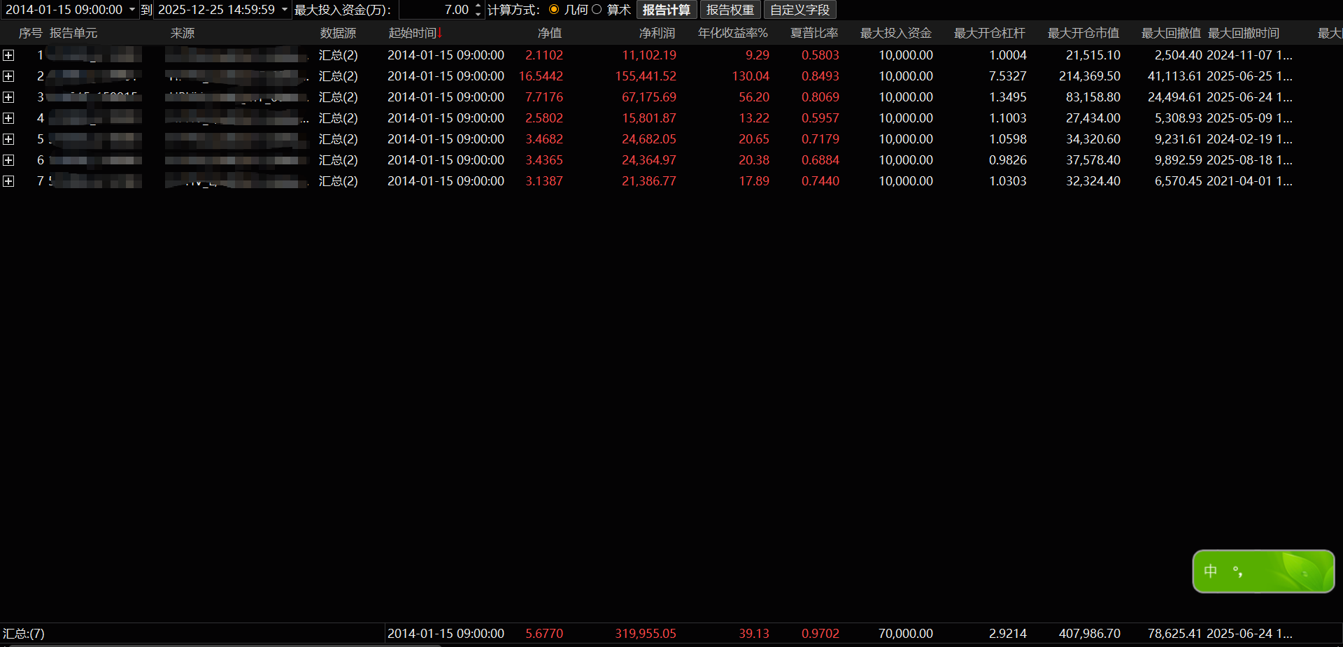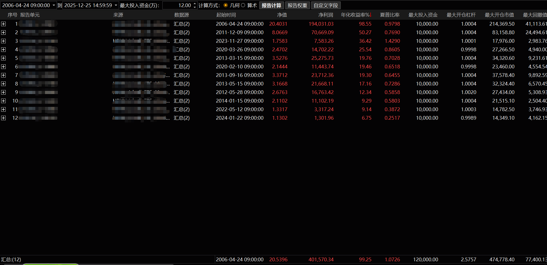老师说得有道理,当我把开始时间和结束时间统一后,汇总的年化收益率比较有道理了。