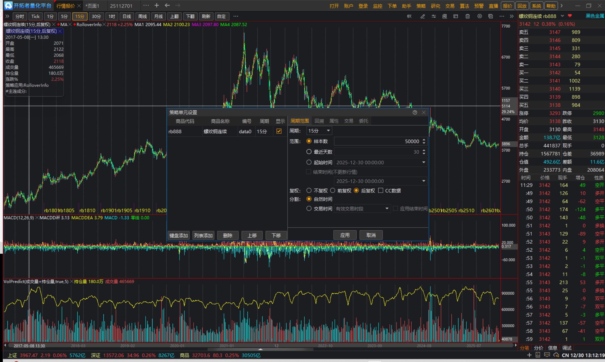 15分钟K线图怎么只能看到2025年的,这么少?不是有5万根Bar吗?