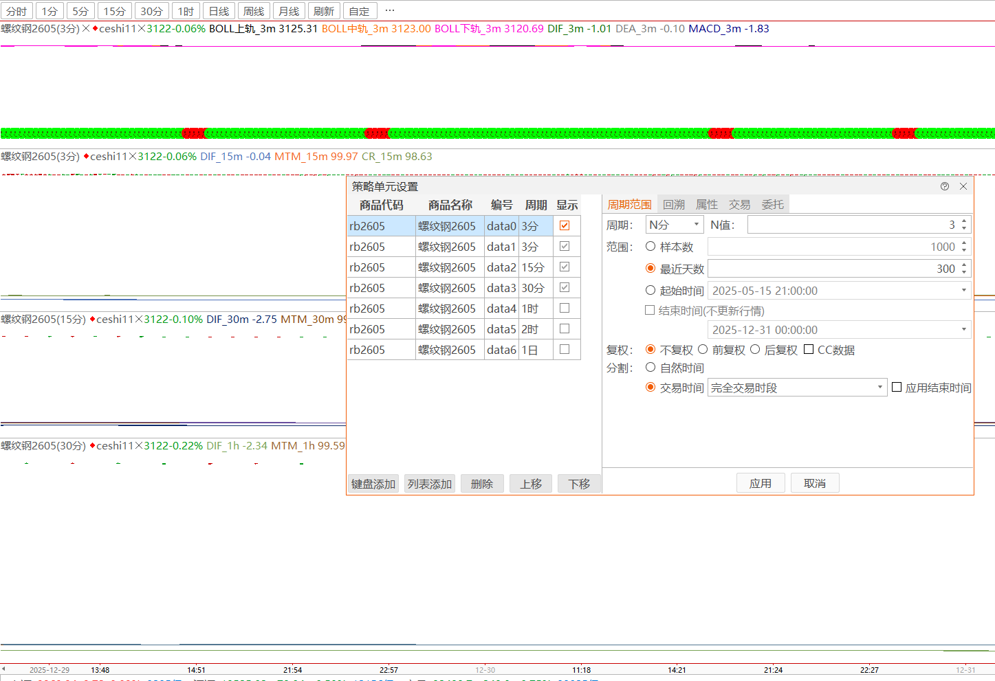 只有刚加载策略那3分钟K线设置成了完全交易时段,别的几个周期都没法设置,大神们来帮忙看看是什么问题