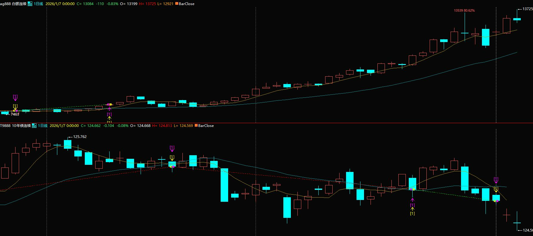 如图最后一根bar,早开盘的品种执行了OnBarClose里的内容:PlotNumeric("MA1",AvgValue1); PlotNumeric("MA2",AvgValue2);