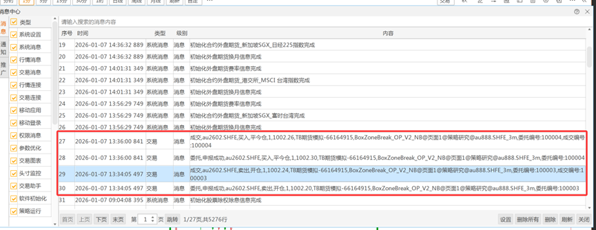 图4 :消息中心只能看到黄金品种在13:34下单了。看不到白银下单,委托成交列表也只看到黄金,看不到白银下单。