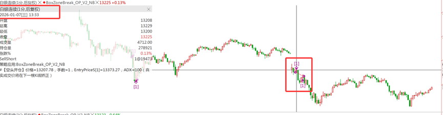 图3 白银品种回测下单时间点是13:33