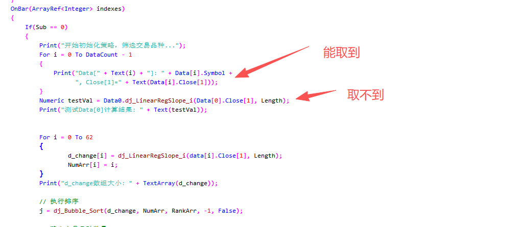 但是在Onbar域里用For循环去取每个Data的值取不到啊, 请帮我解析下原因。