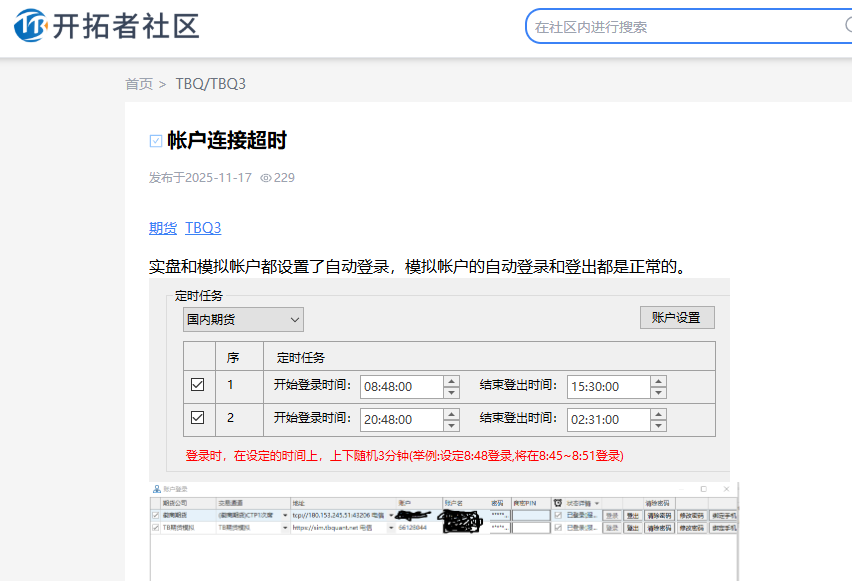 实盘帐户自动登录提示”连接超时“,今天早晨再次发现这个问题(详见上图)。